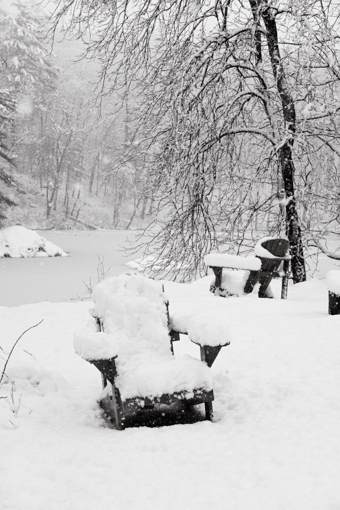 We stay awake, and in the morning go again to walk. For reasons we don’t know ourselves, but well, the snow wants to be seen. In all its crashing, broken forests trees in all manner of undress, and ducks go running.
