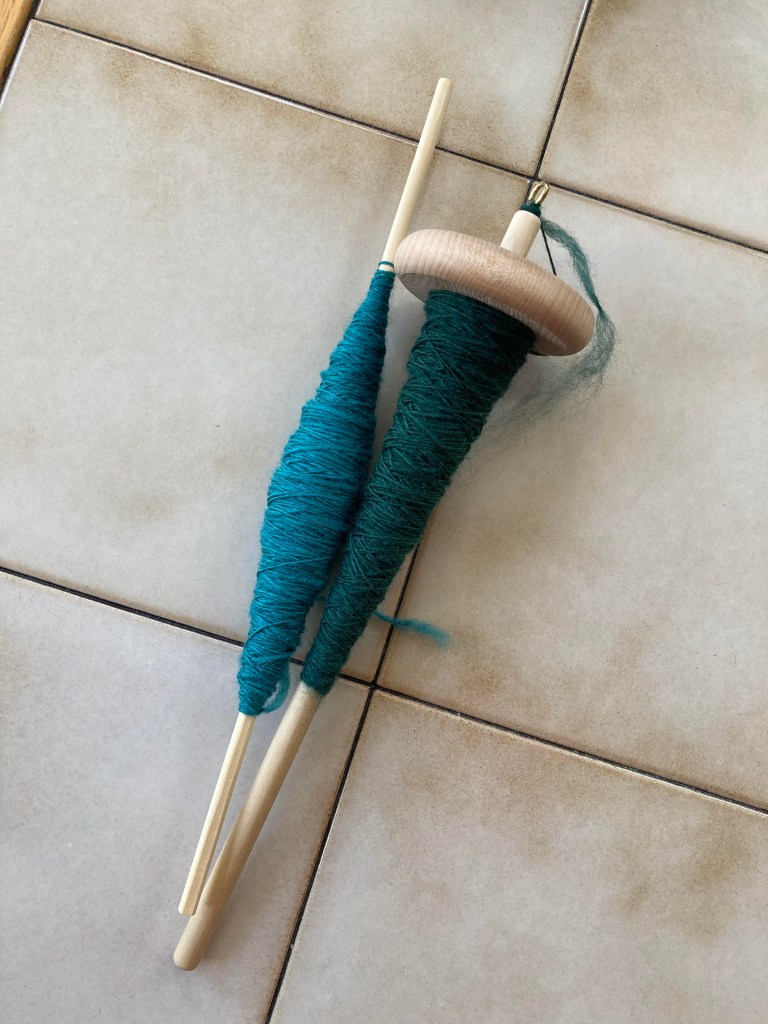 One form of foot tapping is the repetitive and meditative task of turning raw fluffy wool into yarn, and then making things out of that yarn. I received this material from a neighbor who tends a small herd of sheep, and another of alpaca. They are very gentle animals that seem impossibly idyllic in the rural New England setting they live in. Using a small device called a spindle I turned the dyed fiber into single strands, and then twisted the strands against each other in the opposite direction to create a 2 stranded yarn that tensions the twist against itself to keep it from unraveling. The process was surprisingly efficient once I got the hang of it, but this should not be too surprising. After all, for at least 10,000 years the spindle was the sole tool available to humankind to turn raw materials into thread, necessary for all kinds of tasks related to the production of textiles.